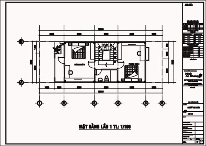 Lầu 1 có hai phòng ngủ được thiết kế nằm đối diện nhau thuận lợi cho ba mẹ trong việc chăm sóc, hỗ trợ con khi chúng gặp khó khăn trong việc học hay mỗi khi chúng ốm. Phòng ngủ tích hợp nhiều công năng mang lại cho gia chủ những tiện ích trong sinh hoạt và nghỉ ngơi. Ban công trước phòng ngủ để gia chủ có thể hít thở không khí trong lành từ thiên nhiên bên ngoài và tạo cho không gian phòng ngủ thoáng đãng, mát mẻ hơn. Nhà vệ sinh chung cho lầu một giống tầng trệt, cách bố trí này khiến không gian tầng tương đối rộng rãi, thoải mái.